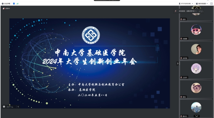 2024年5月8日晚,2024年p站视频 大学生创新创业年会基础医学院分场顺利举行。本次年会共95个项目分6个会场进行线上展示,12位评委专家现场打分,评选出“优秀论文奖”推荐项目24项和“优秀创业实践奖”推荐项目1项。线上观众通过扫描二维码,投票评选出“我最喜爱的现场展示项目”28项。