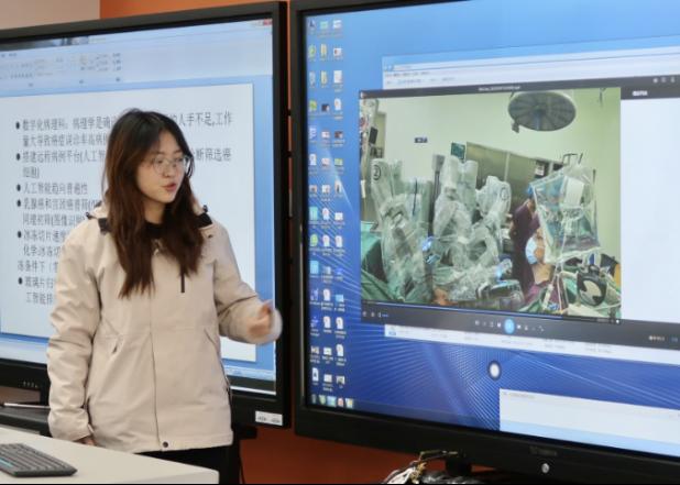 在随后的报告厅分享会上,各学科小组结合前期走访p站视频 湘雅附三医院的调研成果展开深度交流。神经外科小组介绍了神经外科以及脑机接口的相关知识;肿瘤小组展示了未来医疗器械更新趋势;皮肤科小组则从对皮肤科科研组会内容进行了细致的分享;移植科小组围绕器官移植后免疫监测难题,提出了患者对便携式血样检测仪的新需求;病理科小组通过图片展示介绍了病理科的工作流程,探讨人工智能在病理检验的应用。此外,还有一组同学走进手术室参观手术机器人的手术过程,分享医生与机器人的交互场景,并提出了手术机器人的改进方案。