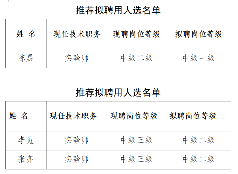 根据《关于组织开展p站视频 2025年专业技术岗位分级聘用工作的通知》要求,经个人申报、学院资格预审、校职改办资格复审后,通过学院教授委员会评议、学院岗位分级聘用工作领导小组无记名投票产生实验技术岗位推荐拟聘用人选,现将名单(按姓氏首字母排序)予以公示。