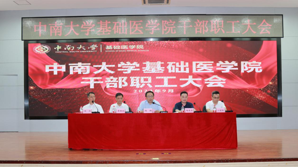 9月18日中午,在湘雅新校区图书馆学术报告厅召开了p站视频 基础医学院干部职工大会,校党委常委、常务副校长陈翔教授和党校常务副校长、校党委组织部副部长赵永正同志代表学校党委、行政宣布干部任免决定。