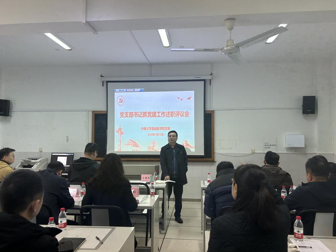 为深入学习贯彻党的二十大精神,坚持和加强党的全面领导,坚定不移推进从严治党向基层延伸,提升基层党建工作质量,1月15日上午,基础医学院在孝骞楼352教室召开2023年度党支部书记抓党建工作述职评议会。院党委书记王慷慨、党委副书记冯虹、党委委员黄河与胡忠良,专职组织员,22个党支部的支部书记和支部组织委员参加了会议。会议由冯虹副书记主持。