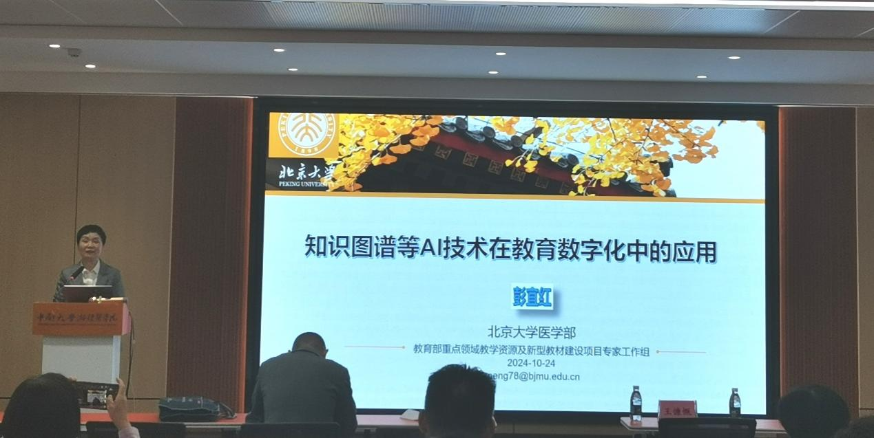 在报告中,彭宜红教授阐述了人工智能技术在教学中的应用与发展前景,深入讲解了知识图谱的概念、特点、类型及构建,并通过案例展示了其在教育场景中的具体应用,同时对教育数字化转型提出了思考与建议。报告内容深入浅出,获得与会师生一致好评。报告结束后,彭教授与医学微生物学系教师进行了深入的学术交流与课题探讨。