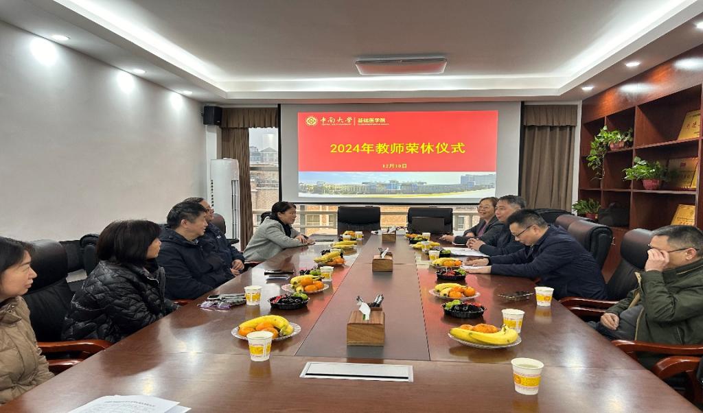 12月10日上午,基础医学院在湘雅新校区孝骞楼711会议室隆重举行2024年教师荣休仪式。学院党委书记王慷慨、院长熊炜和八位退休教师出席,会议由党委副书记冯虹主持。