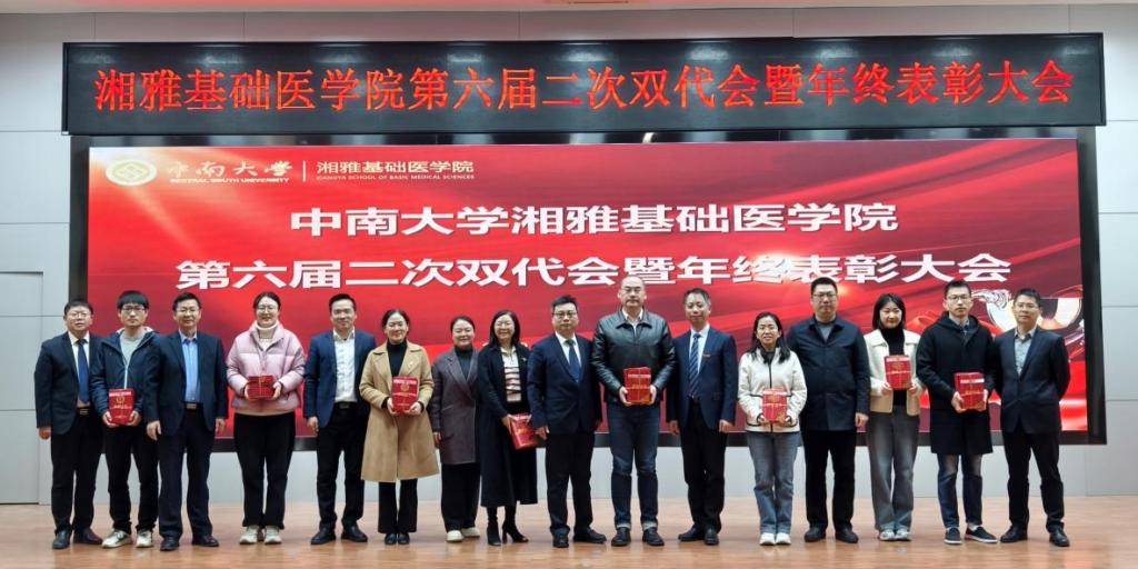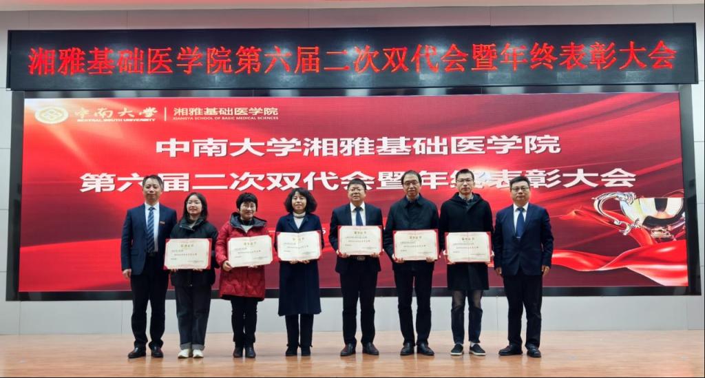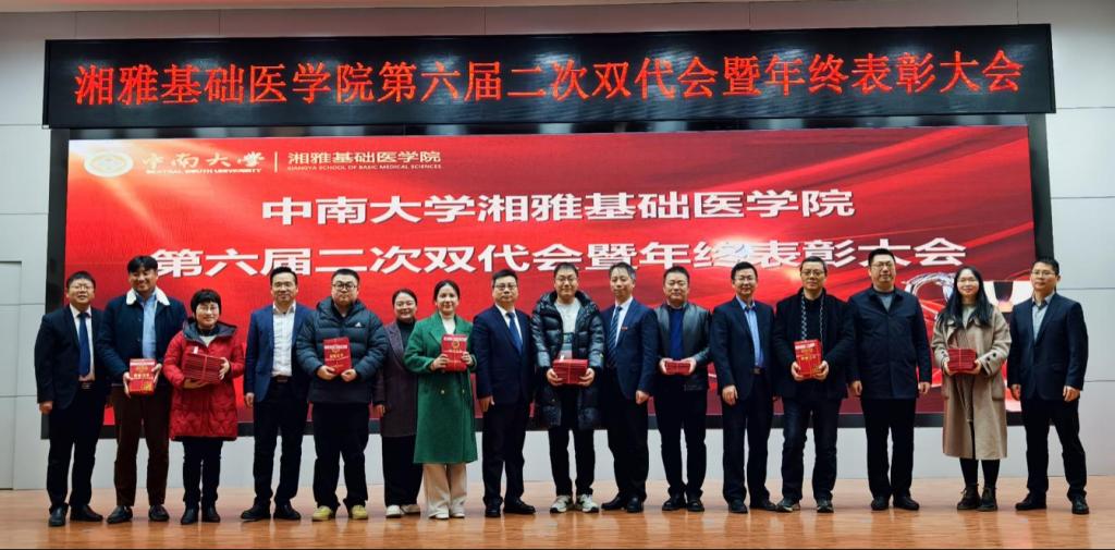 1月17日下午,p站视频 在p站视频 湘雅新校区图书馆报告厅召开2024年度领导班子和领导干部民主测评会、第六届二次双代会暨年终表彰大会。学校党委组织部张志宏副部长、全体院领导和教职工共180余人参加会议,会议由院党委冯虹副书记主持。