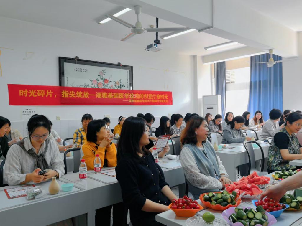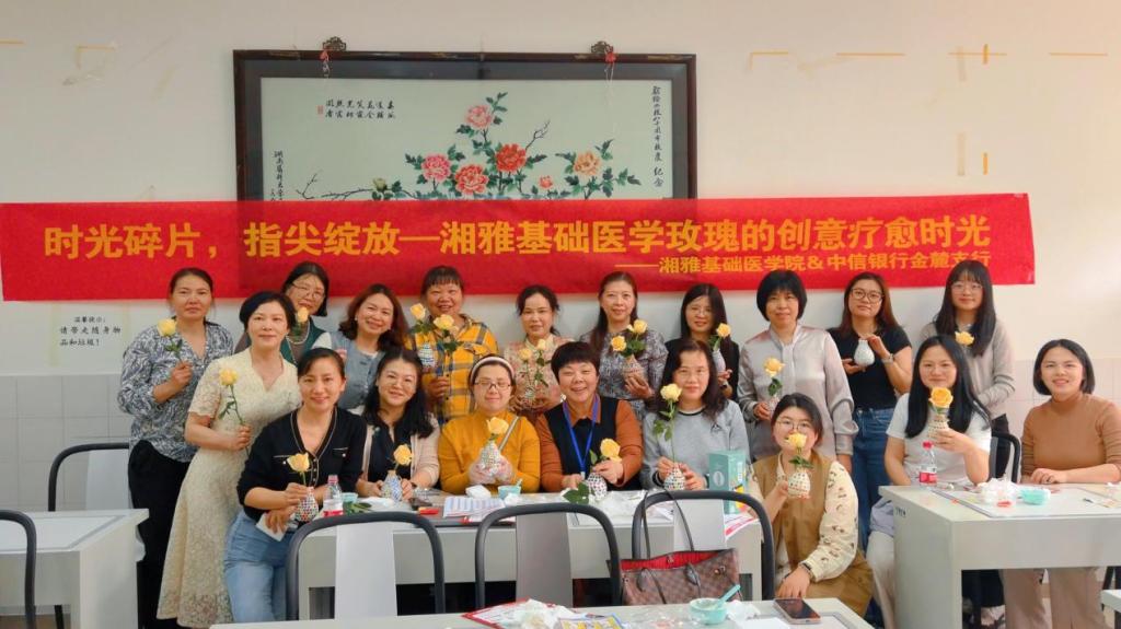 3月27日下午,p站视频 工会精心筹备,组织女职工们开展了“时光碎片,指尖绽放——湘雅基础医学玫瑰的创意疗愈时光”活动。活动中,大家沉浸式地享受着创意手工带来的乐趣,让思维与灵感在指尖尽情碰撞,悠然品味下午茶,品尝清甜的水果,为身心补充满满能量。