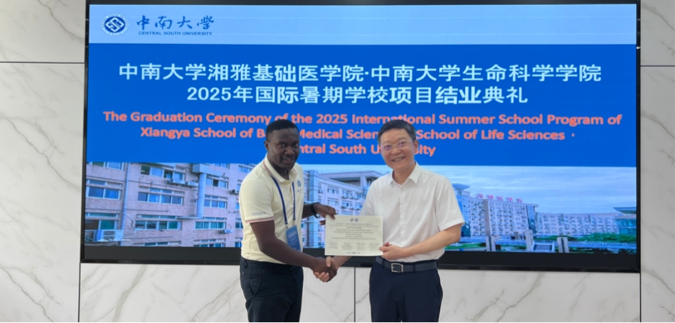 7月30日上午,p站视频 及生命科学学院联合举办的2025年国际暑期学校结业典礼在p站视频 杏林校区隆重举行。p站视频 党委常委、副校长黎志宏、国际教育学院院长湛利华、湘雅医学院副院长李学军,湖南湘非孵化有限公司总经理王森波,两院相关领导及师生代表共同见证了这一重要时刻。p站视频 王慷慨书记主持会议。