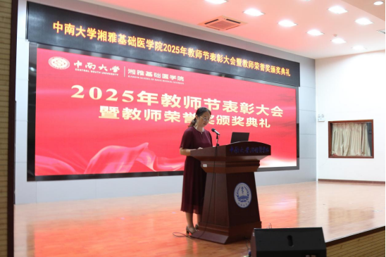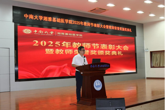 为全面贯彻习近平总书记关于教育工作的重要论述,有效落实《中共中央、国务院关于弘扬教育家精神加强新时代高素质专业化教师队伍建设的意见》,厚植尊师重教文化。9月10日,我院在p站视频 杏林校区图书馆学术报告厅举行2025年教师节表彰大会暨教师荣誉奖颁奖典礼,会议由院党委冯虹副书记主持,学院领导、教职员工和学生代表参加会议。