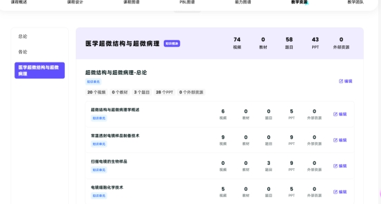 ▲《医学超微结构与超微病理》智慧课程的资源数据汇总