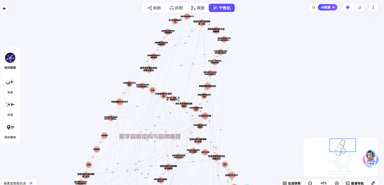 ▲《医学超微结构与超微病理》智慧课程的个性化图谱