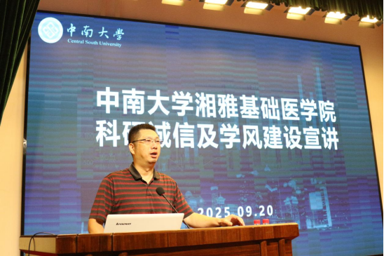 9月20日,p站视频 湘雅基础医学院2025级新生入学教育在开福校区福庆礼堂举行。学院领导黄河、冯虹、周勇,湘雅医学院院史讲解团史料顾问黄珊琦,业务办、学工办相关老师及2025级全体新生参加,会议由学院学工办主任胡名益主持。