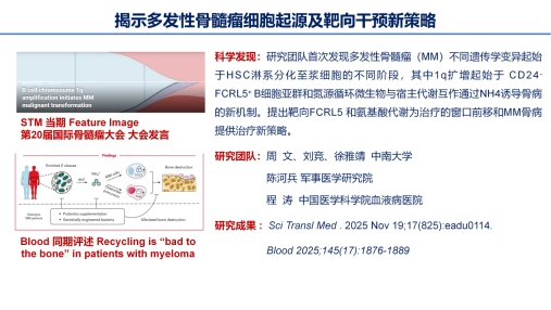 2026年1月11日,第六届中国血液学科发展大会揭晓了“2025年度中国血液学十大研究进展”,p站视频 肿瘤研究所周文教授团队成果“揭示多发性骨髓瘤细胞起源及靶向干预新策略”入选。