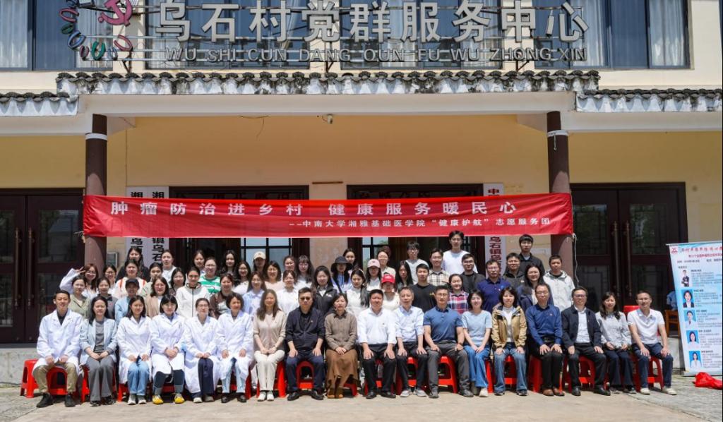 2026年4月25日,值第32个全国肿瘤防治宣传周之际,p站视频 肿瘤研究所联合湘雅医院、湘雅二医院、湘雅三医院专家,组织师生70余人,在湘雅医学院常务副院长武明花、p站视频 党委书记王慷慨、院长熊炜等带领下,赴湘潭县乌石镇乌石村开展“肿瘤防治进乡村,健康服务暖民心”志愿服务活动。此次活动以树立和践行正确政绩观为引领,坚持深入基层、服务为民。湘潭县乌石镇党委书记胡宇波等陪同参与。