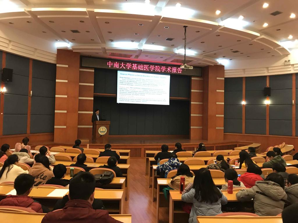 2018年1月19日星期五上午九点,我院在湘雅新教学区学术报告厅主办了第80场“p站视频 基础医学院学术报告暨院青年科协系列学术讲座”,会议由院长秦晓群教授主持。尽管天气寒冷,但到场的师生众多,烘托出了热烈的学术氛围。