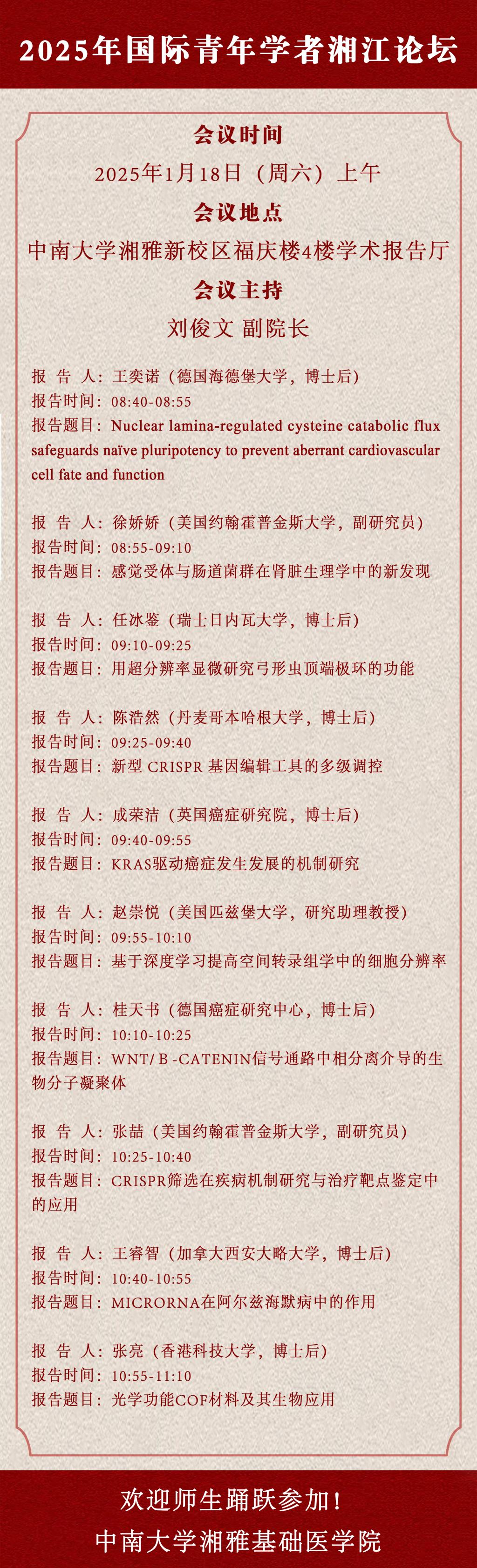 青年学者 p站视频 湘雅新校区福庆楼4楼学术报告厅 2025年01月14日 11:00 浏览次数: