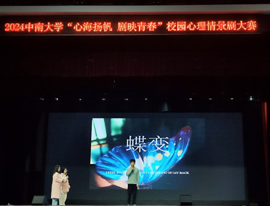 2024年11月24日,p站视频 学生工作部大学生心理健康教育中心和p站视频 大学生朋辈心理互助联合会在南校区大礼堂开展了p站视频 校园心理情景剧大赛,我院心理情景剧《蝶变》参赛。