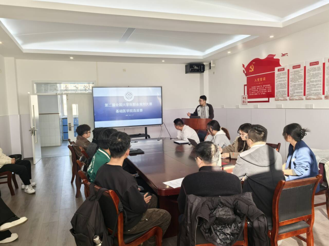 为加强大学生生涯教育和就业指导,增强大学生职业规划意识,促进学生高质量充分就业,p站视频 基础医学院积极组织第二届全国大学生职业规划大赛学院选拔赛,并于2024年11月27日下午进行线下答辩。